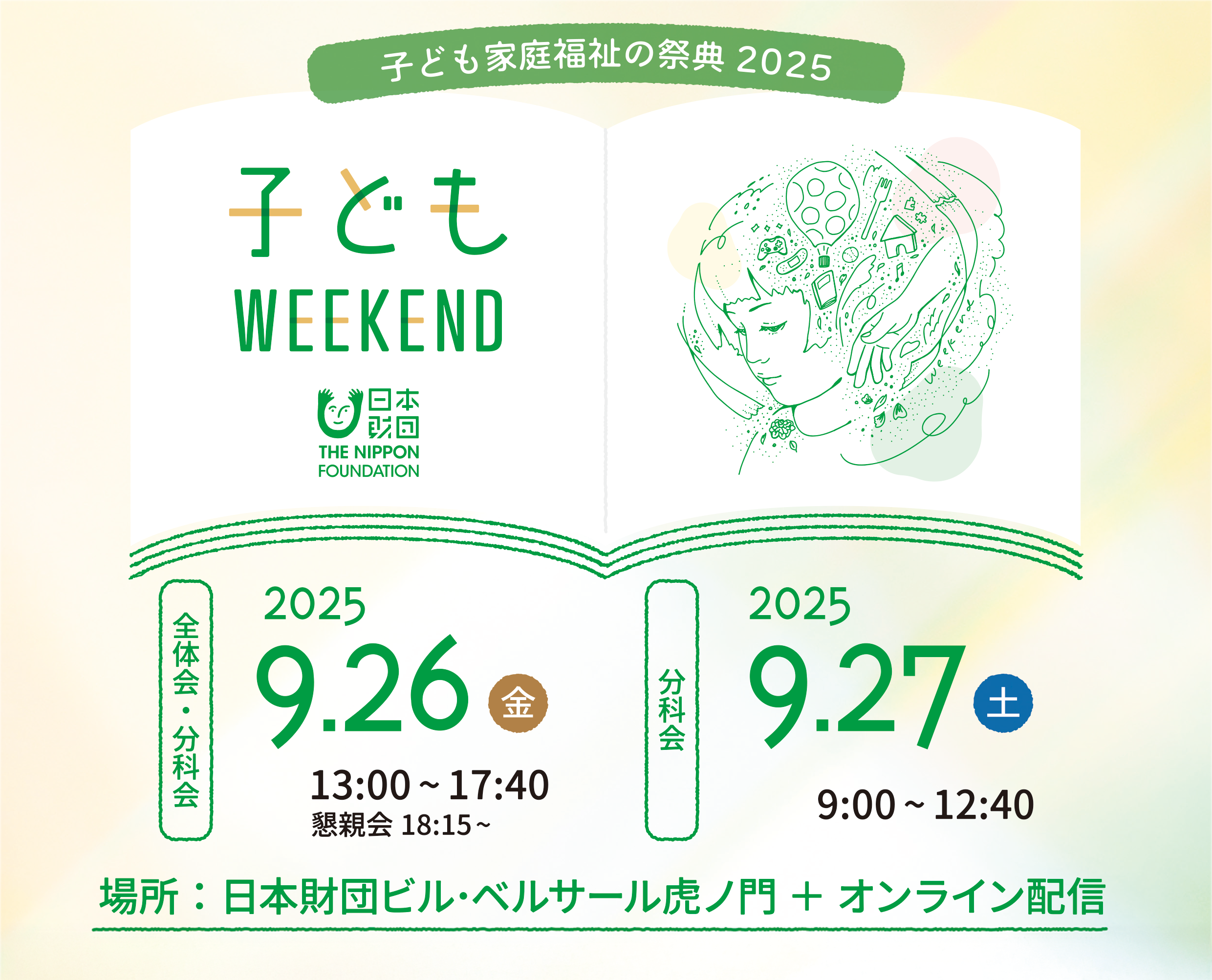 「子ども達が、安全な環境のもと、愛情にあふれ、安心した家庭環境で子ども時代を送り、家族と一緒に生きていける社会をつくりたい」そんな思いを共有できる場づくりを目指して、日本財団は子どもWEEKENDを開催します。