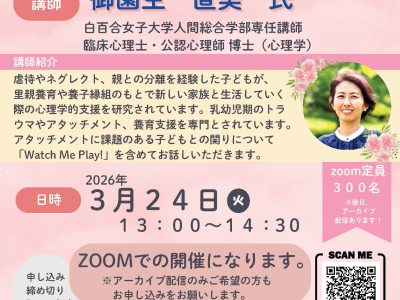 Zoomウェビナー「社会的養護にいる乳幼児のケア: アタッチメントの観点から子どもの最善の利益を守るために」開催のお知らせ -