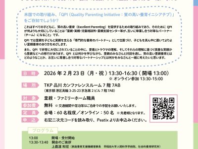 日本財団助成 NPO法人家庭養育支援機構 里親向けQPIイベント 【会場参加あり】開催のお知らせ -